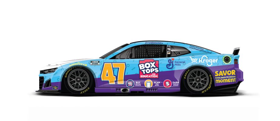 Ricky Stenhouse Jr. #47 Kroger/General Mills Box Tops Chevy Camaro-New sponsor for 2024 light blue and dark blue with designs. A