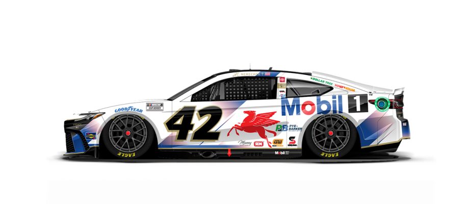 Ross Chastain #1 Jockey x Folds of Honor Chevy Camaro–New scheme for 2024, white with wavy patriotic stripes. A