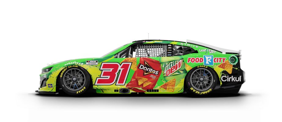 Daniel Hemric #31 Doritos/Mountain Dew by Food City Chevy Camaro-Bold, unique, good color scheme, not over done, this gets an A.