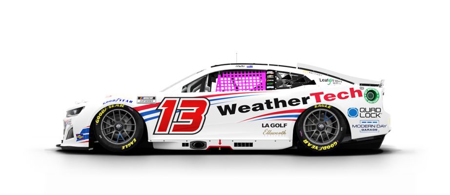 Zane Smith #71 WeatherTech Chevy Camaro-New sponsor for 2024, white with red and white stripes. A