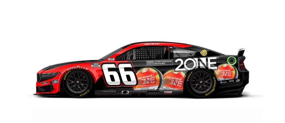 Josh Bilicki #66 2ONE Pouches Ford Mustang-New sponsor for 2024, red front, white rear. A