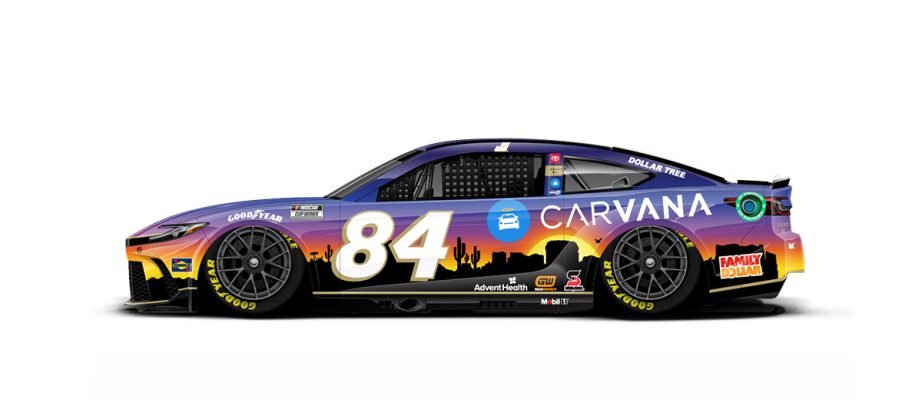 Jimmie Johnson #84 Carvana Chevy Camaro-New scheme for 2024, desert sunset motif. A
