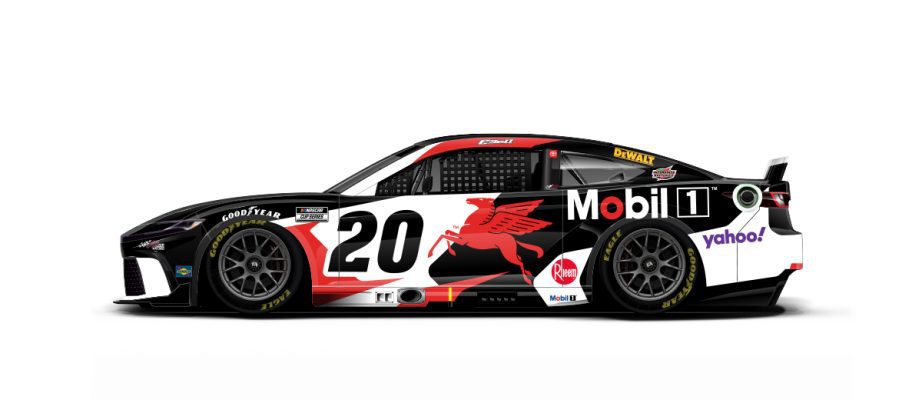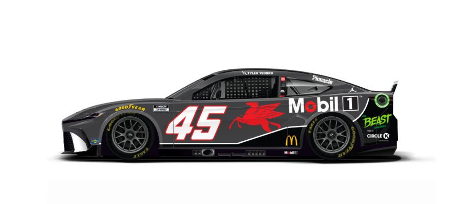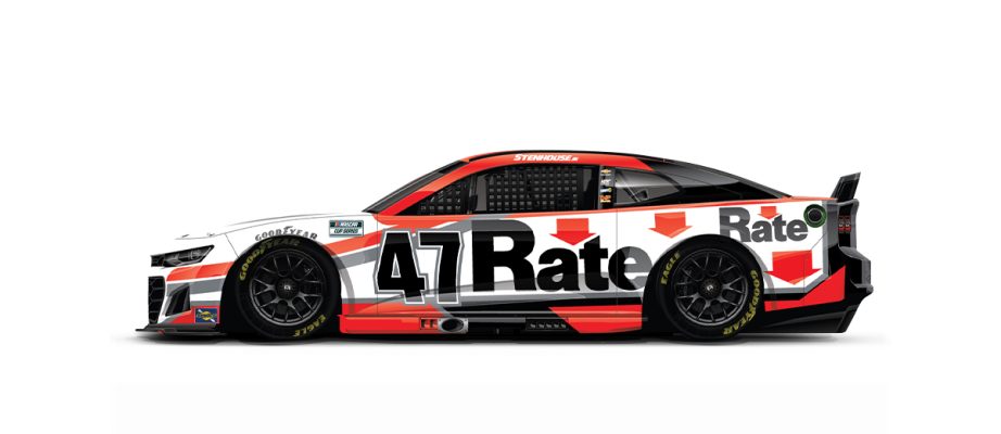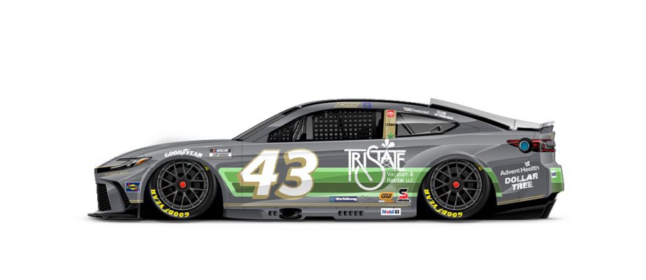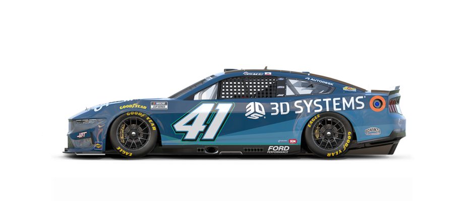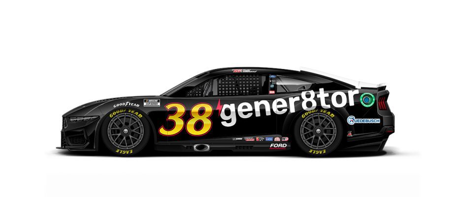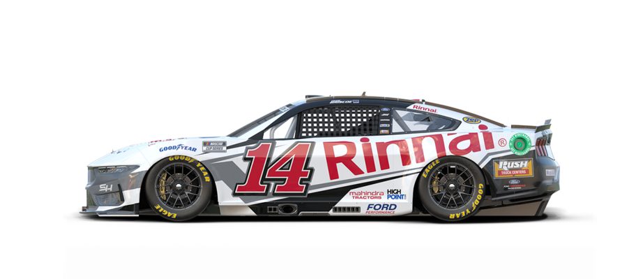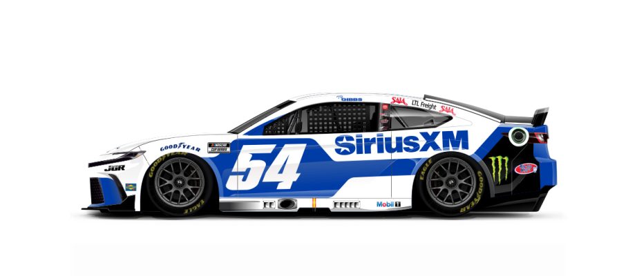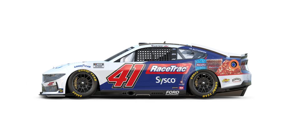 Noah Gragson #4 Rasmussen Air & Gas Energy Mustang–New scheme for 2025, white with light blue and yellow stripes. C+