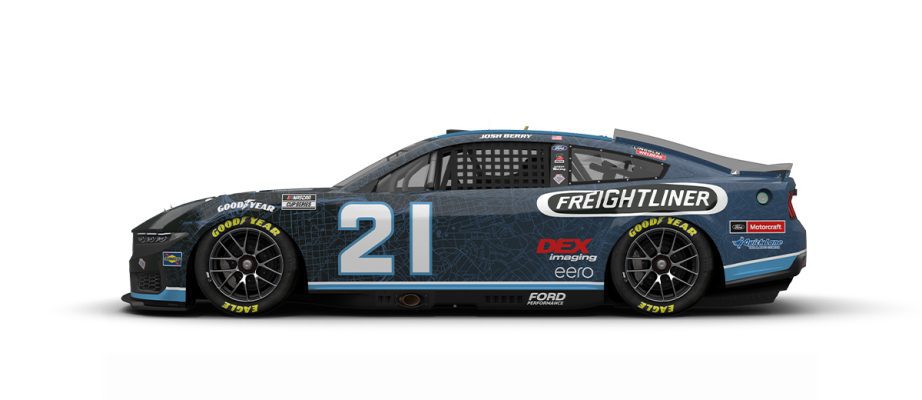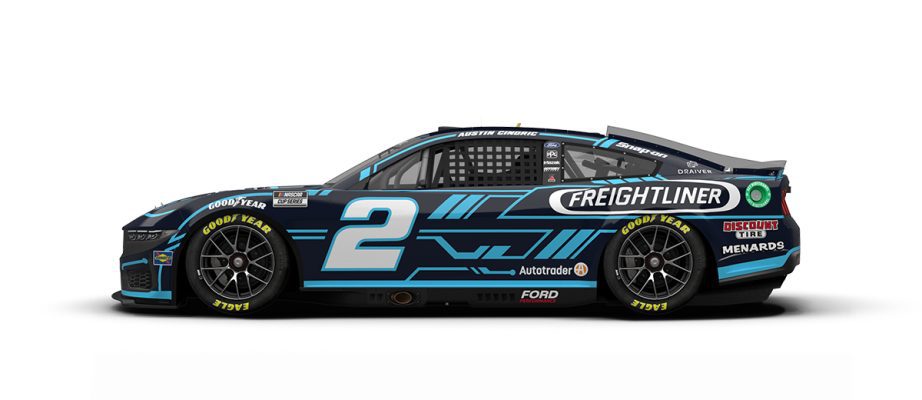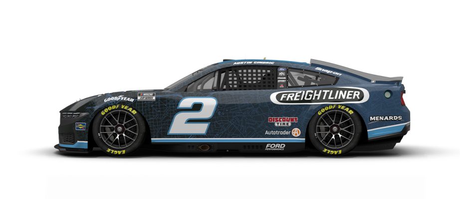 Austin Cindric #2 Freightliner/eCascadia Ford Mustang–New scheme for 2025, dark blue with a series of designs. D