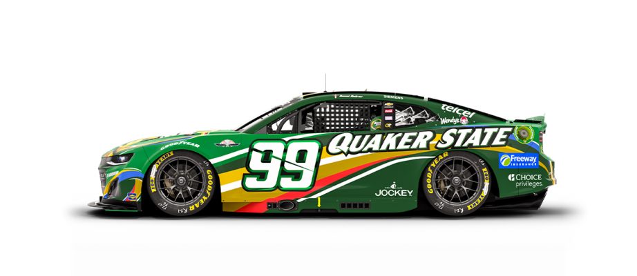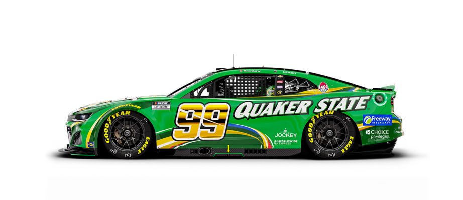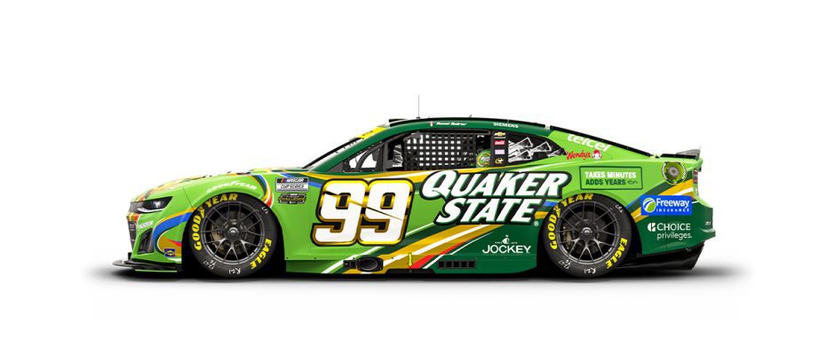 Daniel Suarez #99 Quaker State Chevy Camaro-New scheme for 2025, green stripes changed. C