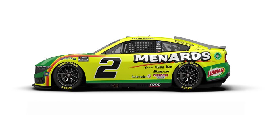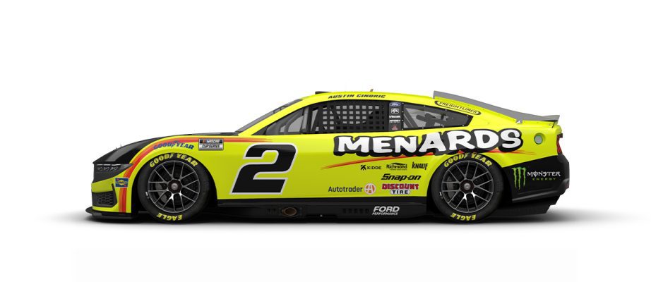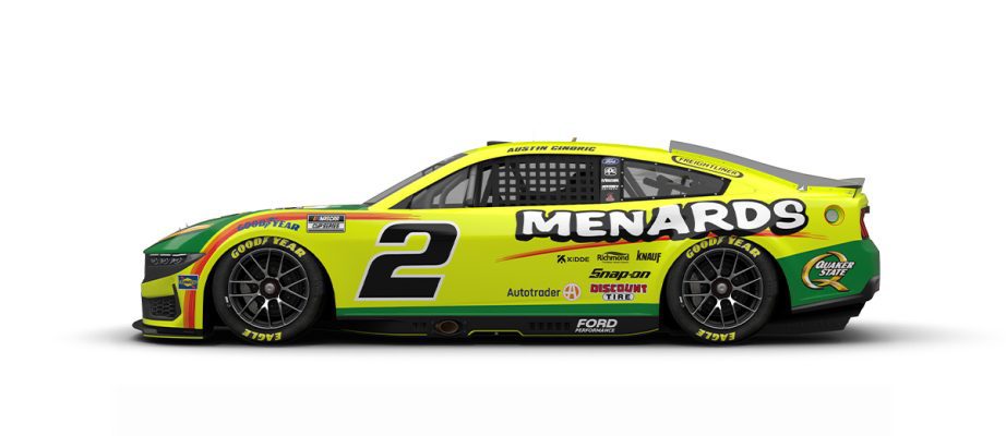 Austin Cindric #2 Menards/Delta Ford Mustang-New sponsor for 2025, Menard’s template with black. A