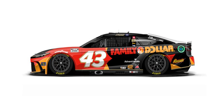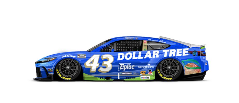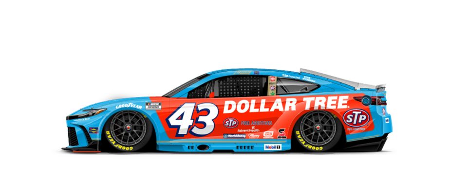 Daniel Suárez #99 Jockey/Folds of Honor Chevy Camaro–New scheme for 2025, blue with patriotic ribbon motif. B