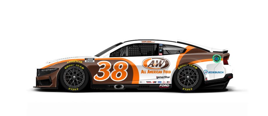 Noah Gragson #4 A&W Root Beer Ford Mustang-New scheme for 2025, secondary colors reversed. B