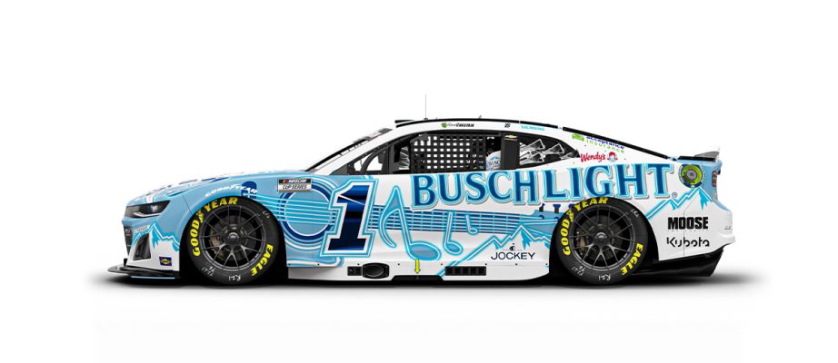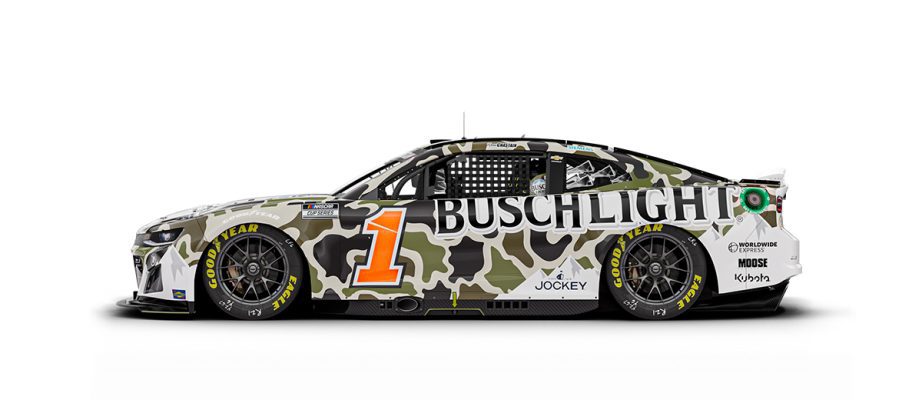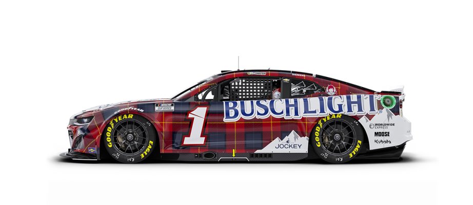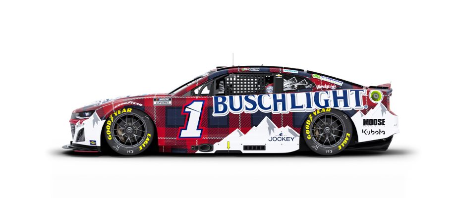 Ross Chastain #1 Busch Light Flannel Chevy Camaro–No change. A