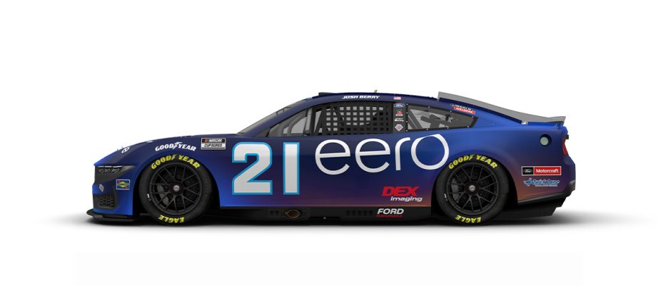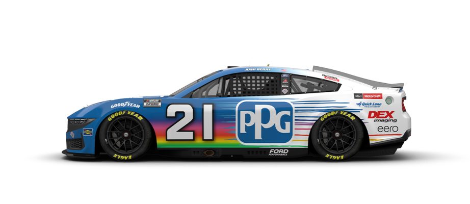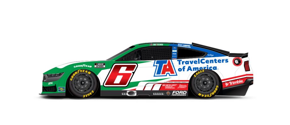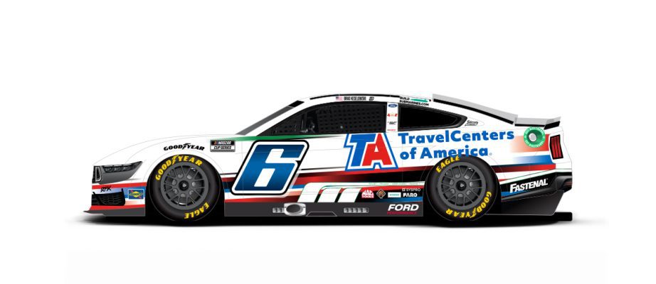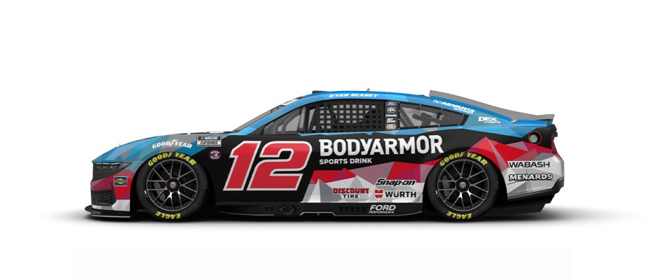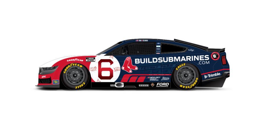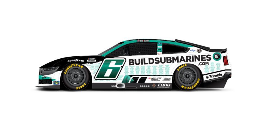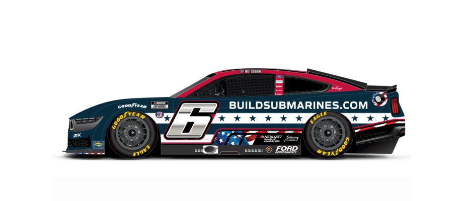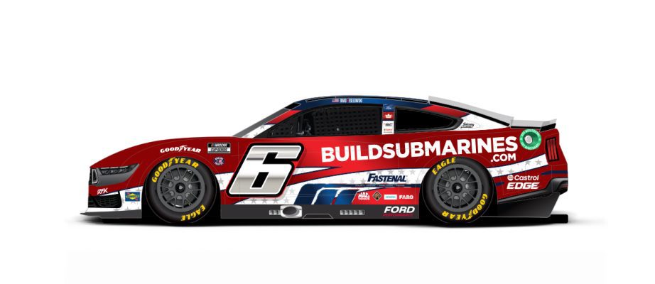 Brad Keselowski #6 BuildSubmarines.com Patriotic Ford Mustang–New scheme for 2025, blue with patriotic elements added. A