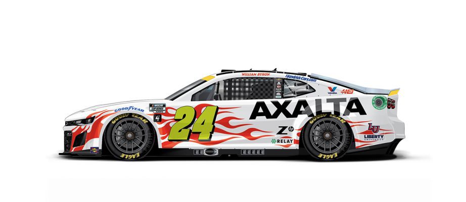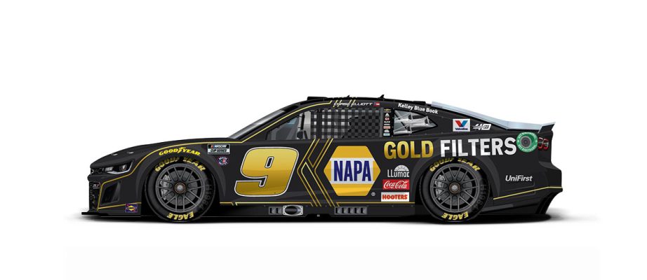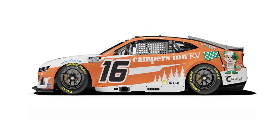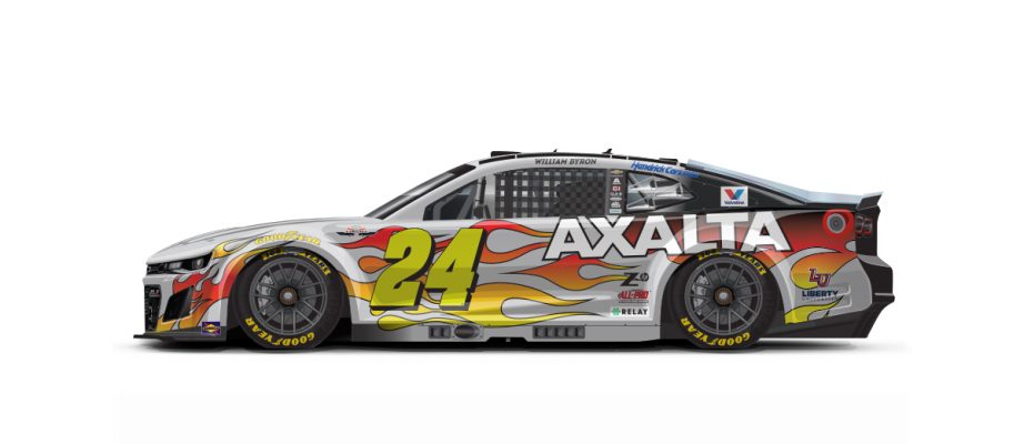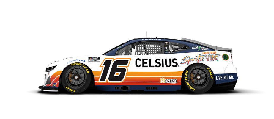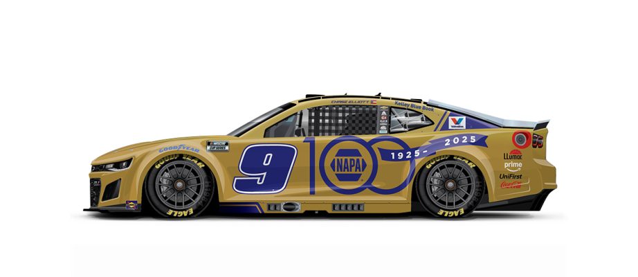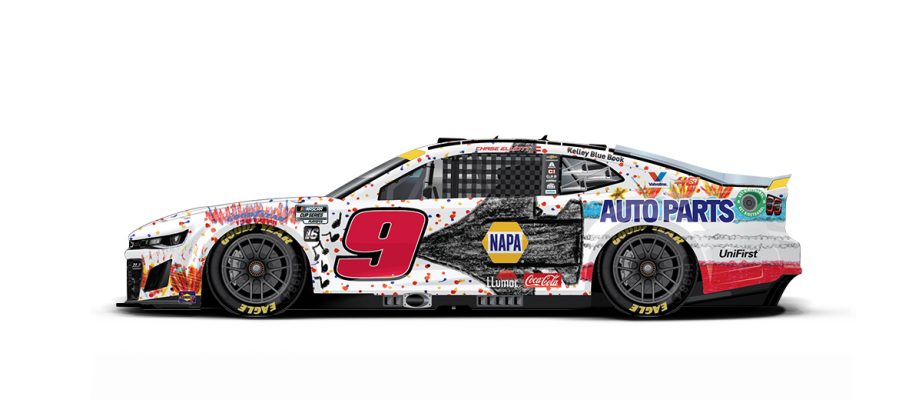 Kyle Larson #5 HendrickCars.com Throwback Chevy Camaro–New scheme for 2025, based on Terry Labonte’s 2001 #5 Kellogg’s Chevy. A