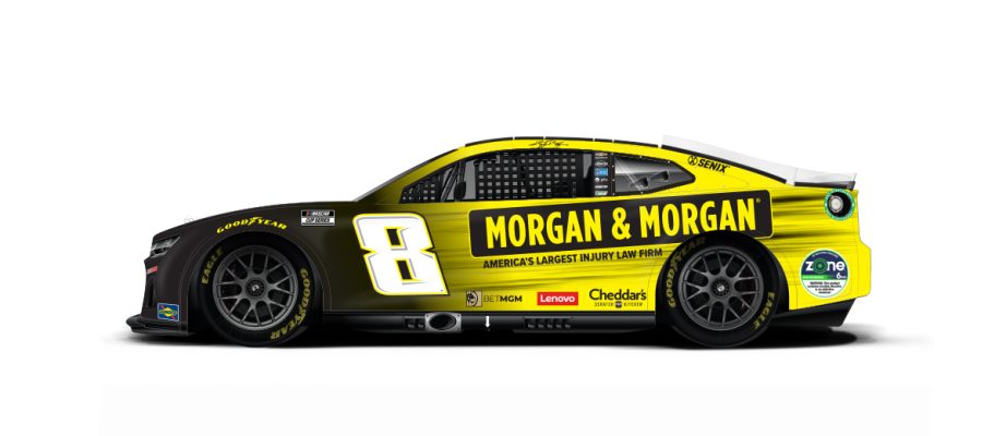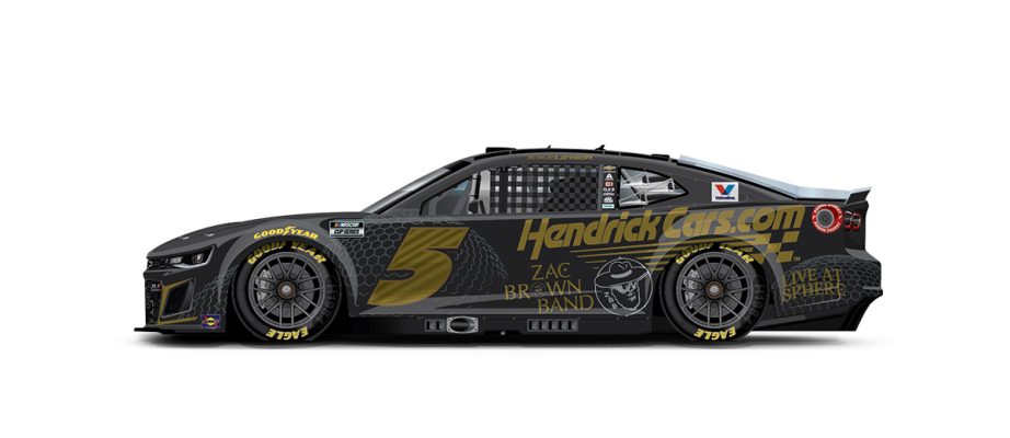Kyle Larson #5 HendrickCars.com/Zac Brown Band Chevy Camaro-New sponsor for 2025, black and orange with sublimated designs, A-