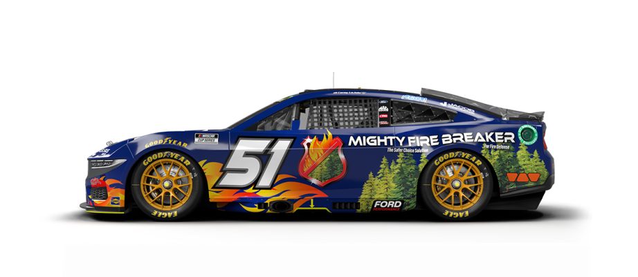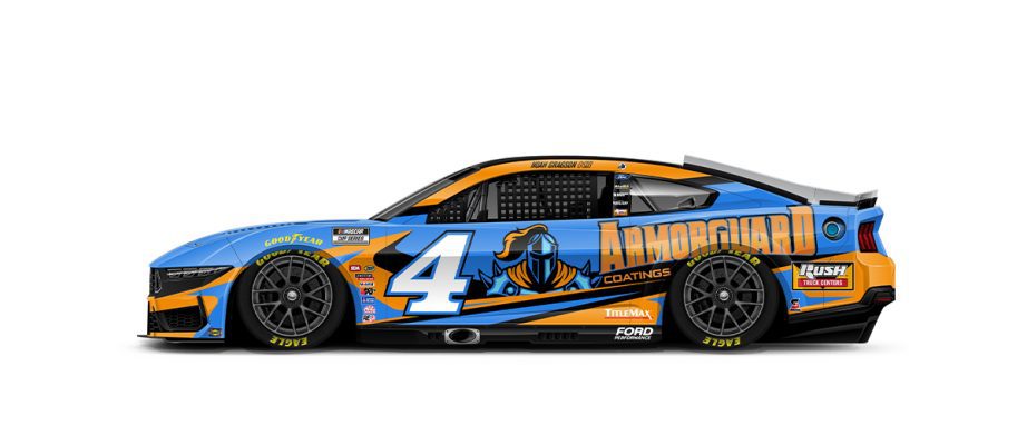 Noah Gragson #4 ArmorGuard Ford Mustang-New sponsor for 2025, blue and orange with black stripes. F