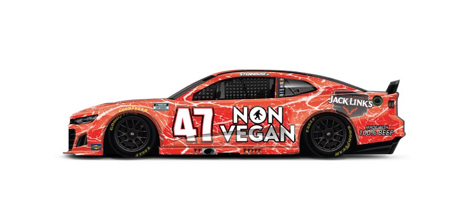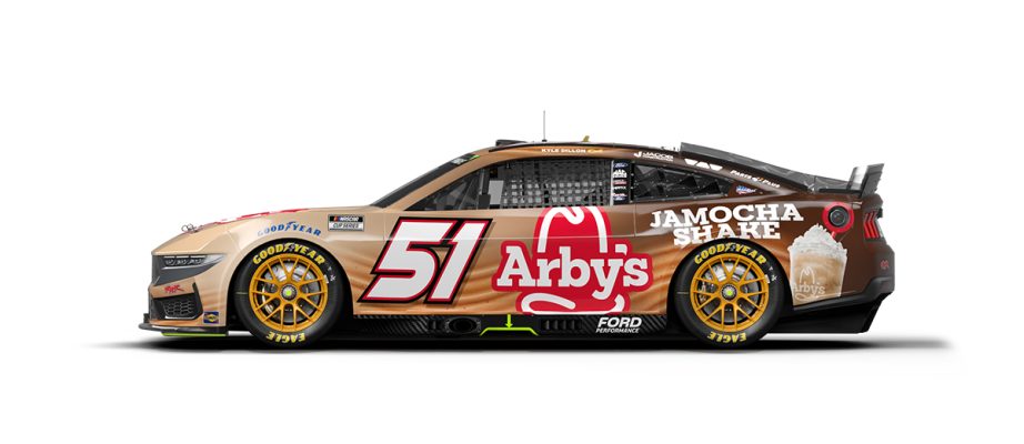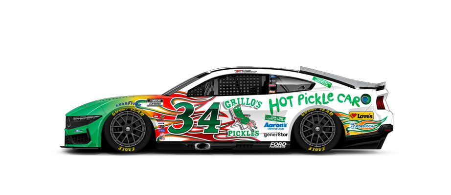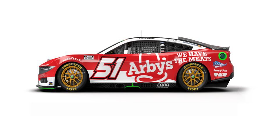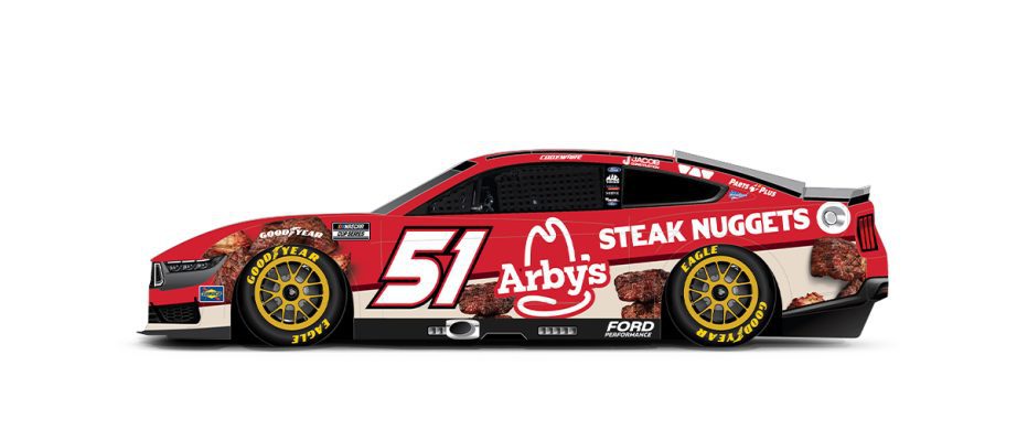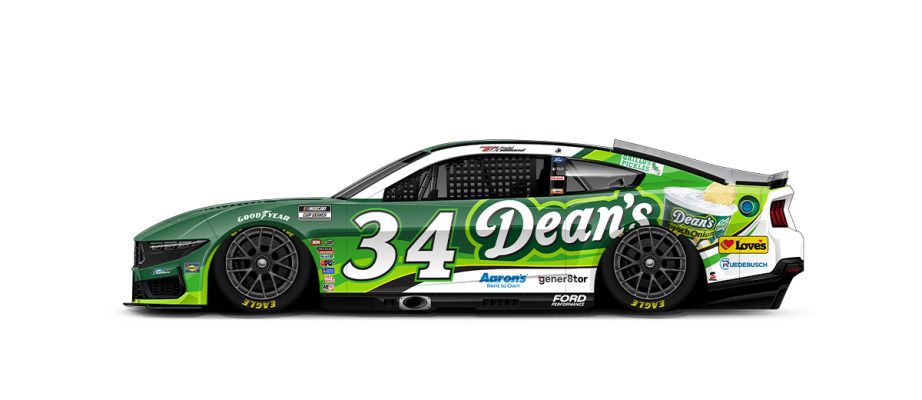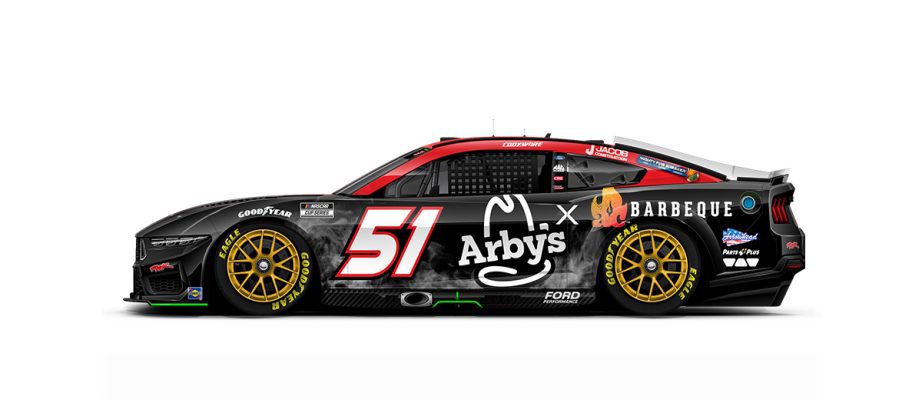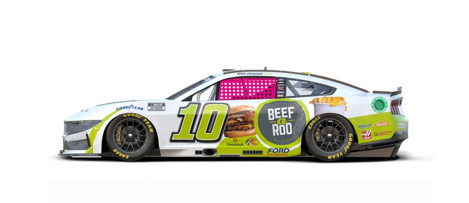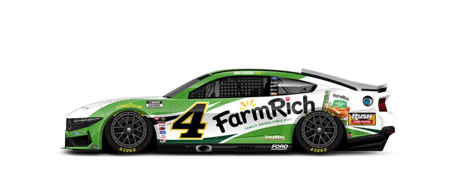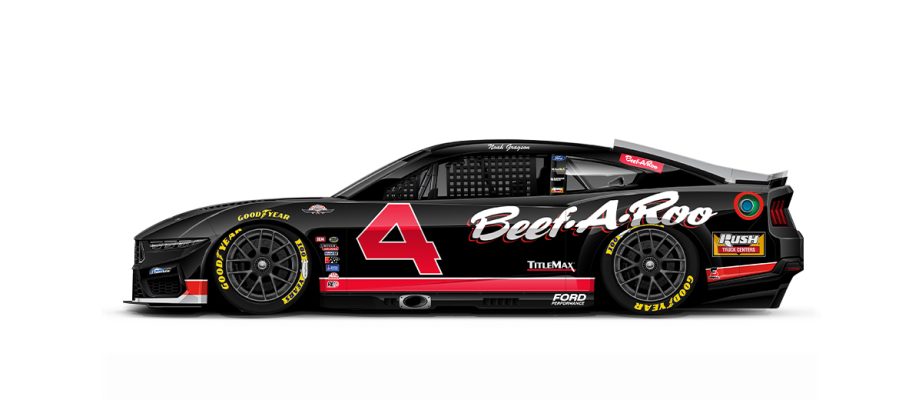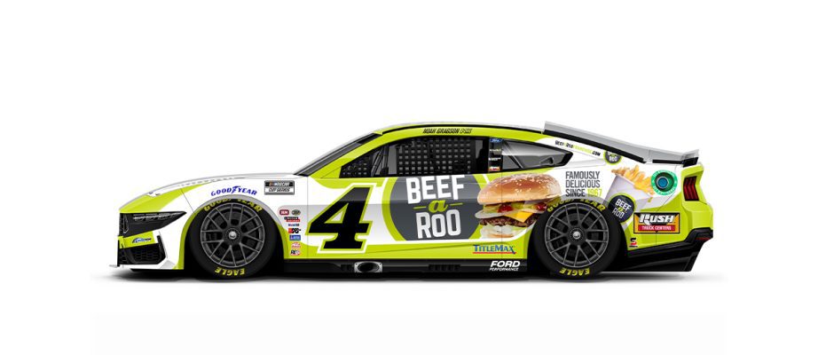 Noah Gragson #4 Beef-a-Roo Throwback Ford Mustang–New scheme for 2025, Based on Dale Earnhardt Jr.’s 1996 #31 Mom ‘n’ Pops Chevy. A