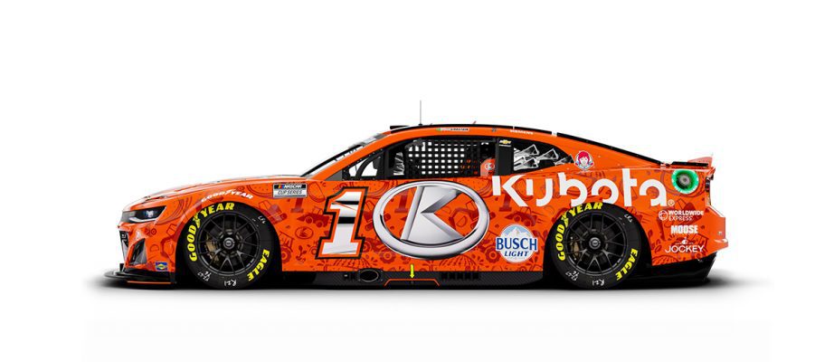 Ross Chastain #1 Kubota Chevy Camaro–New scheme for 2025, red stripe fade to black stripe fade to red. B
