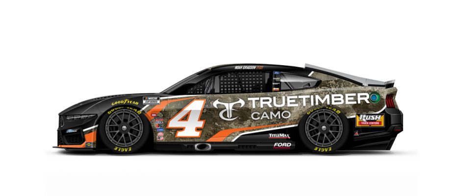 Noah Gragson #4 TrueTimber Chevy Camaro-New sponsor for 2025, black with camo and stripes. F