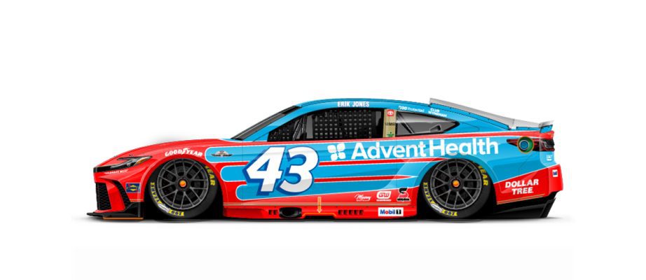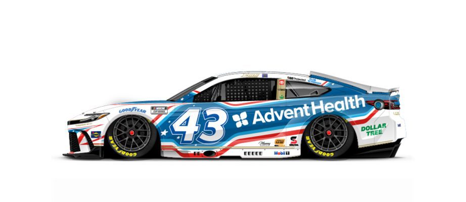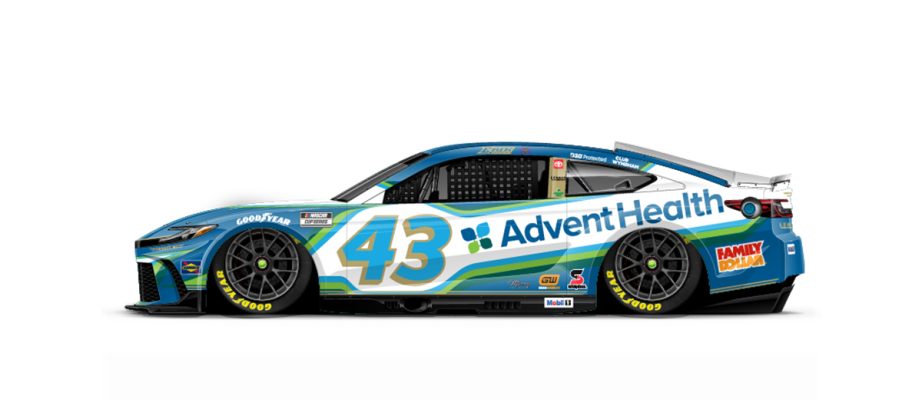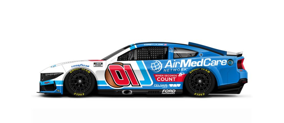 Corey LaJoie #01 AirMedCare Network Ford Mustang-New sponsor for 2025, blue and white with stripes. A