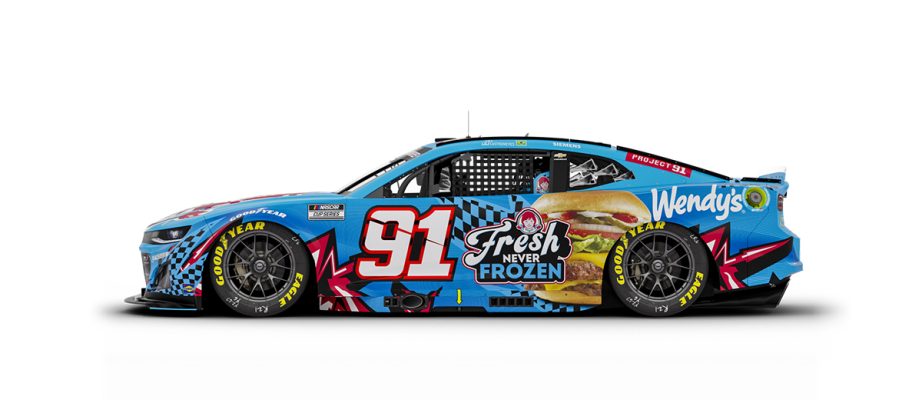 Hélio Castroneves #91 Wendy’s Chevy Camaro–New scheme for 2025, blue with designs. B