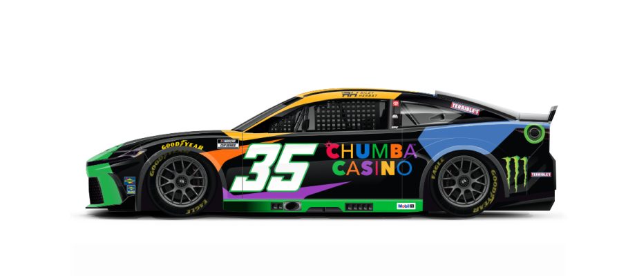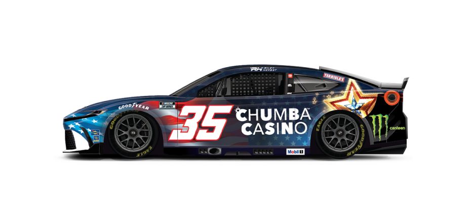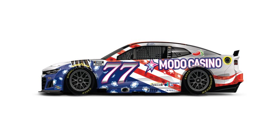 Carson Hocevar #77 Modo Casino Chevy Camaro-New scheme for 2025, American flag motif with casino elements. B