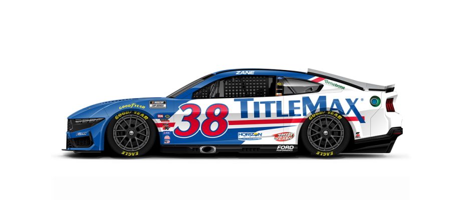 Noah Gragson #4 TitleMax Ford Mustang-New sponsor for 2025, blue with red and white designs, B