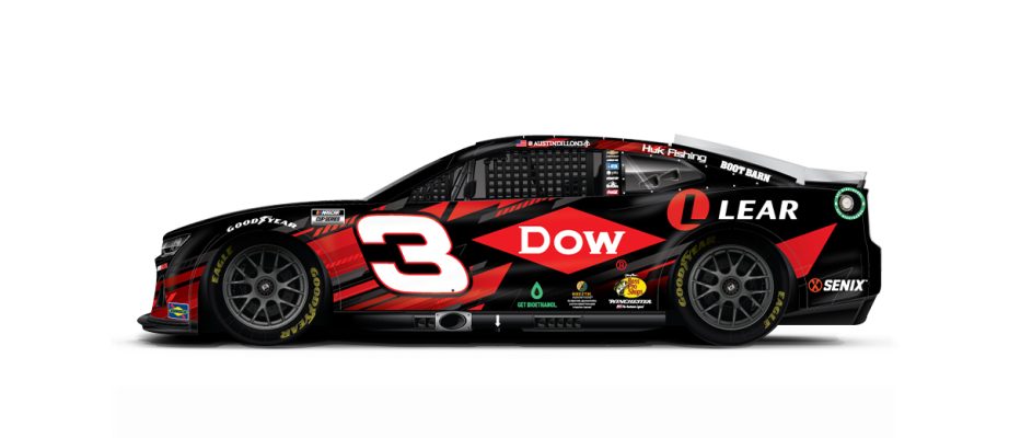 Austin Dillon #3 Dow DayGlo Science Chevy Camaro-New sponsor for 2025, black with blue designs. F