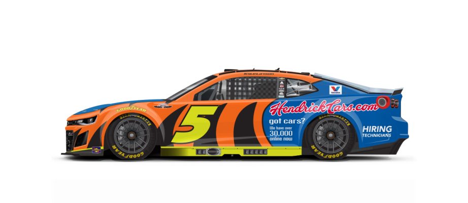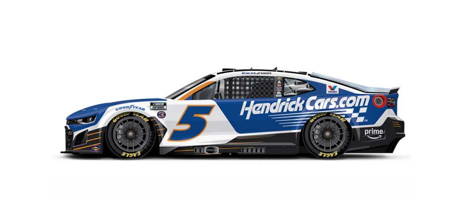 Kyle Larson #5 HendrickCars.com H1100 Chevy Camaro–New scheme for 2025, based on his Indy 500 ride. B