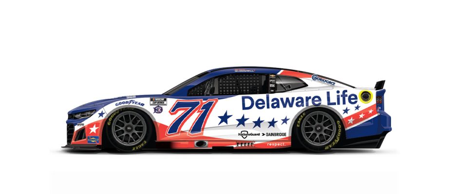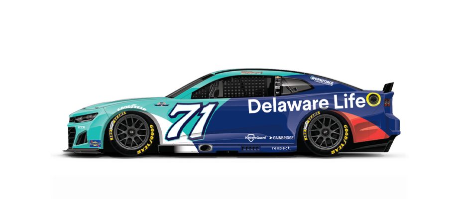 Michael McDowell #71 Delaware Life Chevy Camaro-New scheme for 2025, similar to #77, but with some changes. C-