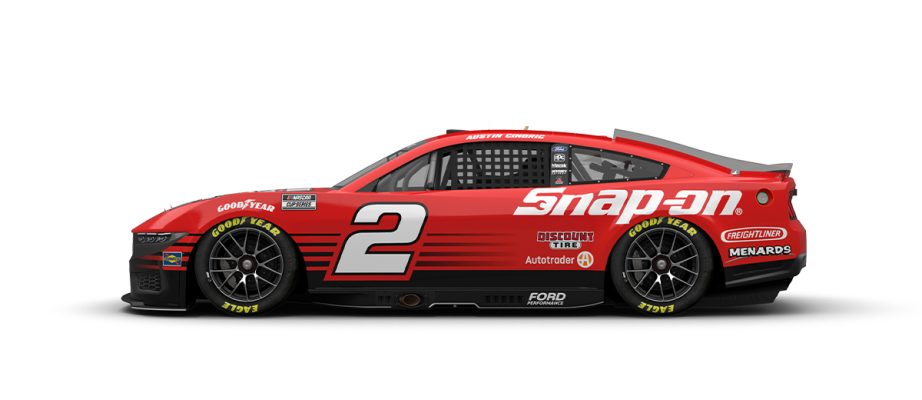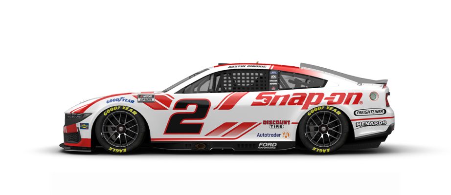 Austin Cindric #2 Snap On Ford Mustang–New scheme for 2025, white with red and black designs. A-