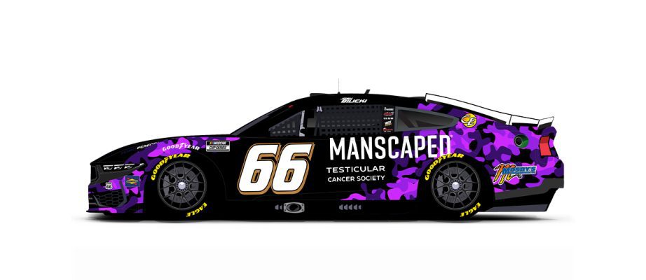 Josh Bilicki #66 Manscaped Ford Mustang-New sponsor for 2025, black with blue camo. F