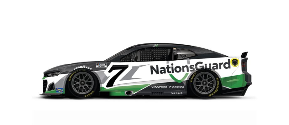 Michael McDowell #71 Delaware Life/Veterans 1001 Chevy Camaro-New scheme for 2025, patriotic elements across car. D+