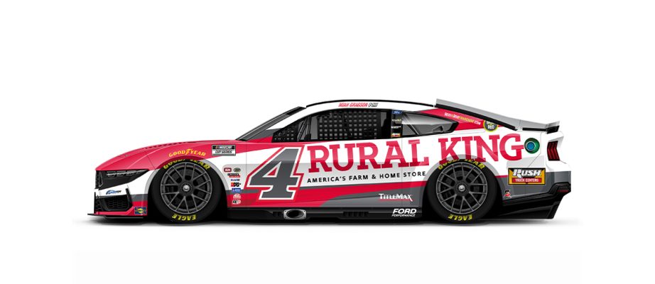 Noah Gragson #4 Rural King Ford Mustang-New sponsor for 2025, red with white and green stripes. A