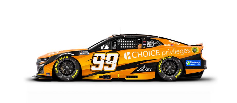 Daniel Suárez #99 Choice Privileges Chevy Camaro–New scheme for 2025, some slight changes. F