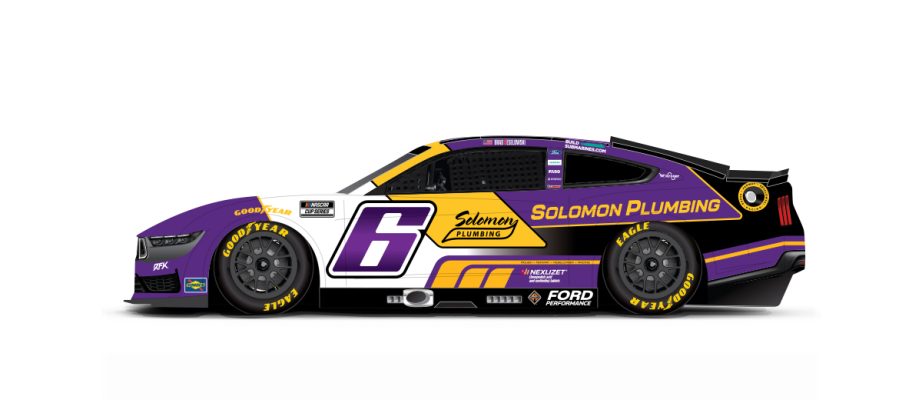Brad Keselowski #6 Solomon Plumbing Ford Mustang-New scheme for 2025, blue, white, yellow, and black with designs. D