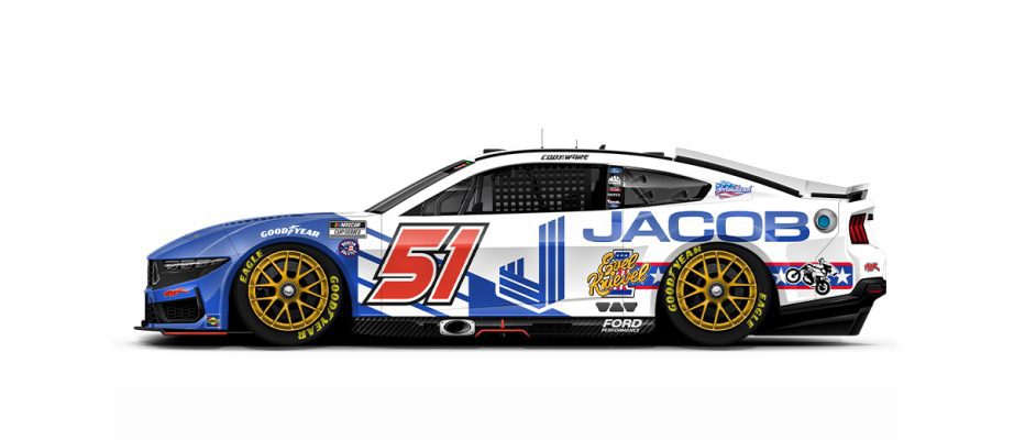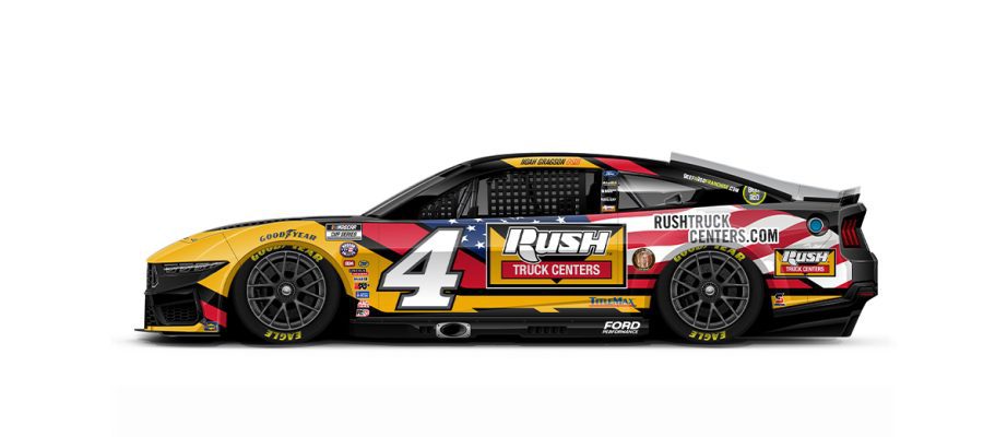 Noah Gragson #4 Rush Truck Centers Patriotic Ford Mustang-New scheme for 2025, patriotic elements added. B+