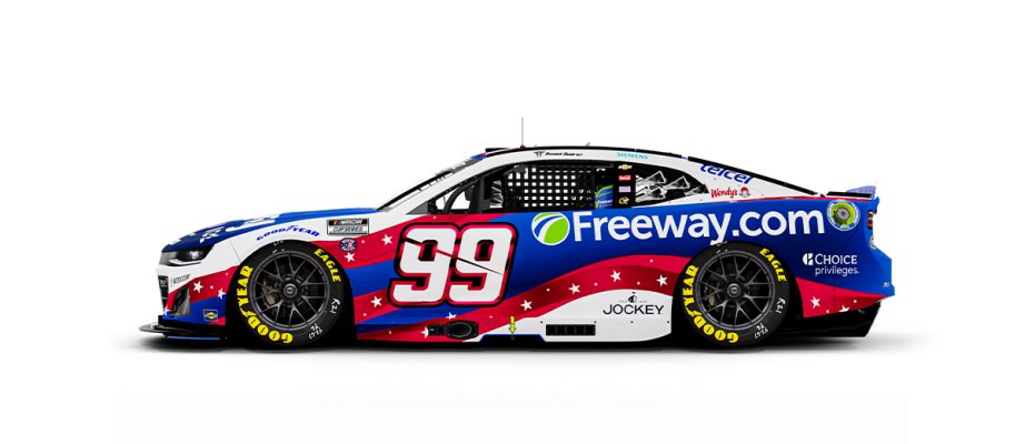 Daniel Suarez #99 Freeway Insurance Patriotic Chevy Camaro-New scheme for 2025, patriotic elements added across car. F