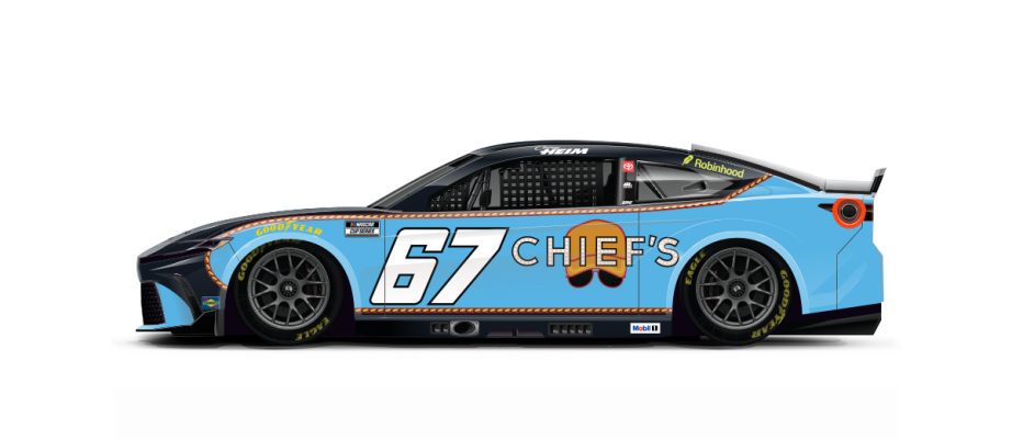 Corey Heim #67 Chief’s Toyota Camry-New sponsor for 2025, black, with blue and sewing motif. A