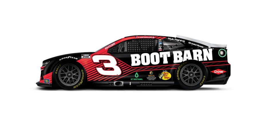 Austin Dillon #3 Boot Barn Chevy Camaro–New scheme for 2025, some changes to the stripes. A-