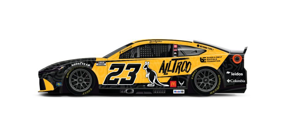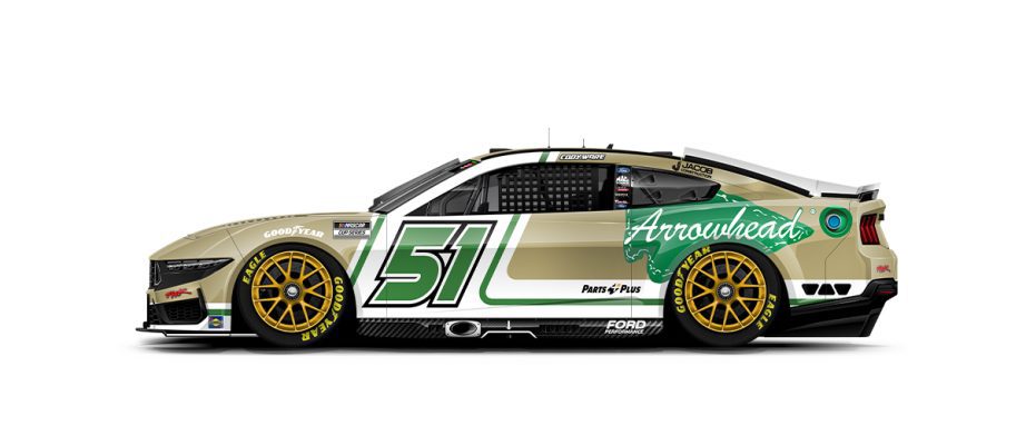 Noah Gragson #4 Beef A Roo Ford Mustang–New scheme for 2025, white, and yellow, with some designs. A