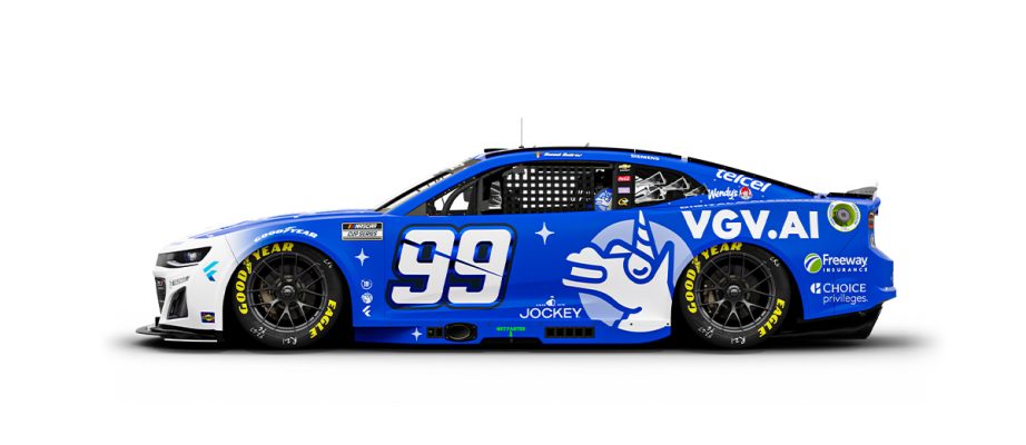 Daniel Suarez #99 Very Good Ventures Chevy Camaro-New sponsor for 2025, white fade to blue on front. A