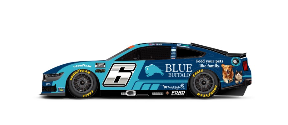 Brad Keselowski #6 Kroger/Blue Buffalo Ford Mustang–New scheme for 2025, light blue and dark blue. A