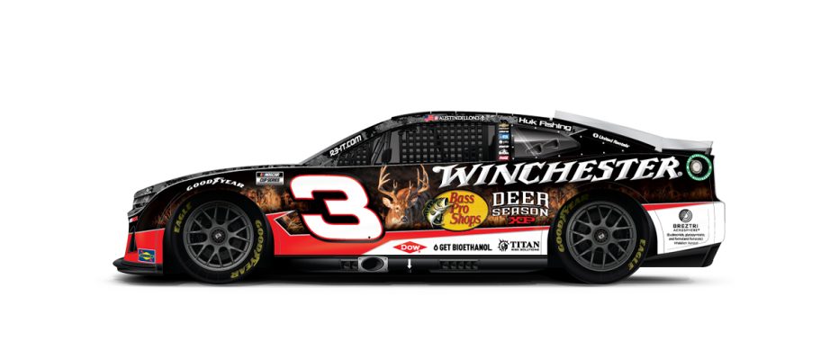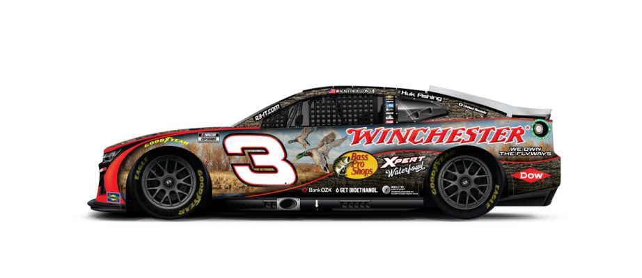 Austin Dillon #3 Bass Pro Shops/Winchester Chevy Camaro–New scheme for 2025, camo and black. F