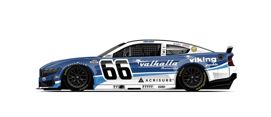 Casey Mears #66 SI Yachts Ford Mustang-New sponsor for 2025, dark blue with light blue and white. A
