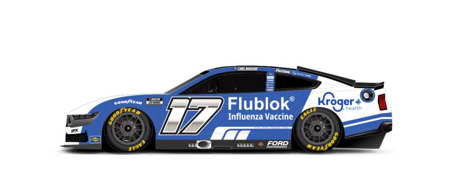 Brad Keselowski #6 Kroger Ford Mustang-New scheme for 2025, white with blue rear. A