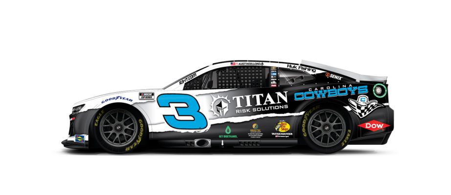 Austin Dillon #3 Titan Risk Solutions Chevy Camaro-New sponsor for 2025, white with red sides. A