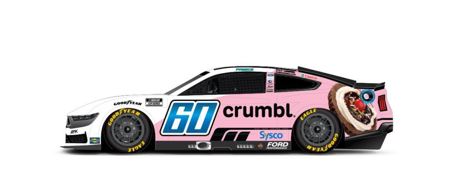Ryan Preece #60 Sysco/Crumbl Ford Mustang-New sponsor for 2025, white and gray. A