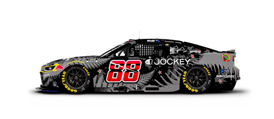 Shane van Gisbergen #88 Jockey Chevy Camaro–New scheme for 2025, red and white stripes. A