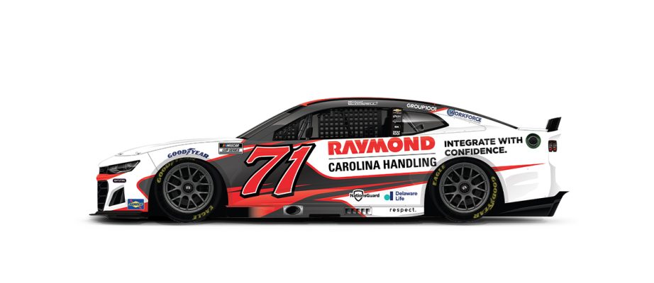 Michael McDowell #71 Carolina Handling Chevy Camaro-New sponsor for 2025, white with red, and gray cutting edge designs. C
