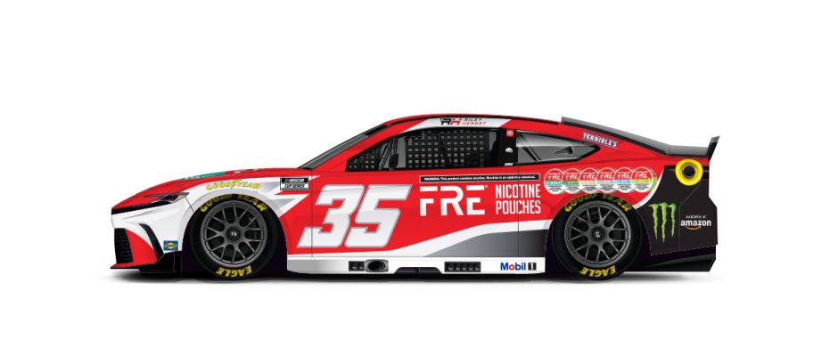 Riley Herbst #35 FRE Nicotine Pouches Toyota Camry-Decent color scheme, mediocre design scheme will earn a C.