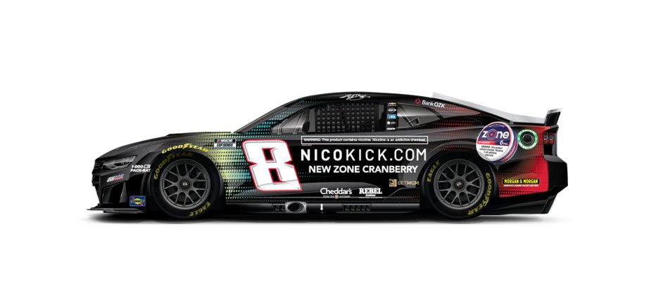 Kyle Busch #8 Nicokick x zone Cranberry Chevy Camaro-A smooth look with a great color scheme will always earn an A.