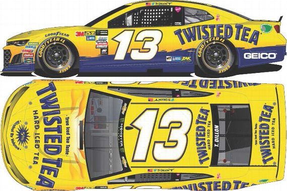 Austin Dillon #3 Scooper Cat Litter Chevy Camaro-New sponsor for 2018, white, light blue, and light yellow with polka dot motif. F